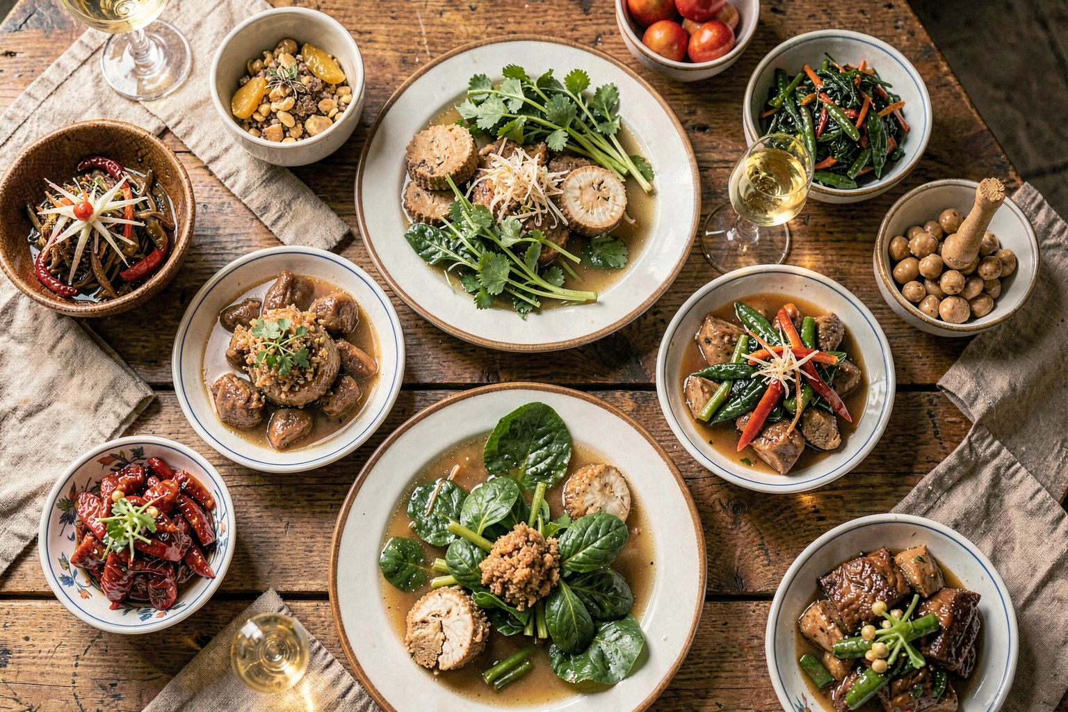 This is a clear, golden broth simmered from pasture-raised chicken bones and charred aromatics, served over rice noodles and topped with a mountain of fresh basil, cilantro, and mint. The flavor is deep and savory without a trace of refined sugar, relying on the natural sweetness of caramelized onion and ginger alongside a touch of pure maple syrup. It is a restorative, polyphenol-dense meal that honors the Vietnamese tradition of healing through broth while stripping away industrial seed oils and processed additives.