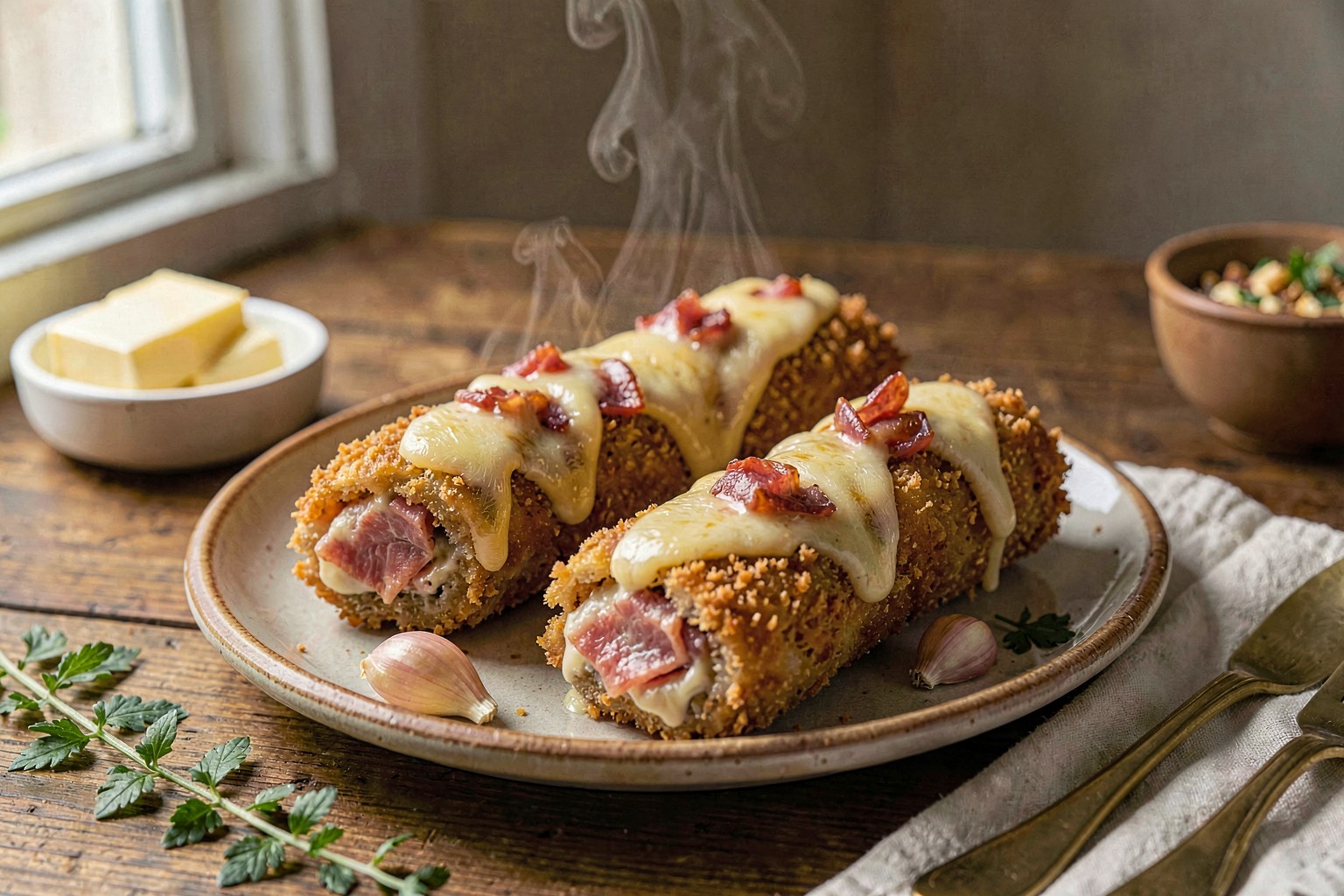 This usually happens if the mixture wasn't chilled enough or if the oil temperature was too low. Ensure the béchamel is rock-hard before shaping and maintain oil temp at 175°C (350°F).