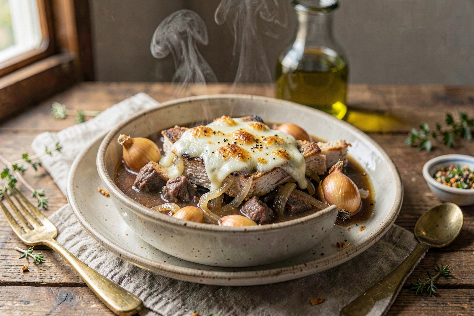 While often associated with Paris, this heartier variation hails from the Auvergne region, where robust flavors and local dairy are staples. Traditionally served as a substantial starter or light main in mountain bistros during winter, it relies on the patience of slow-cooking onions to develop natural sweetness without sugar. Authentic preparation uses a dark beef stock and generous amounts of local Gruyère or Comté, distinguishing it from lighter versions found elsewhere.