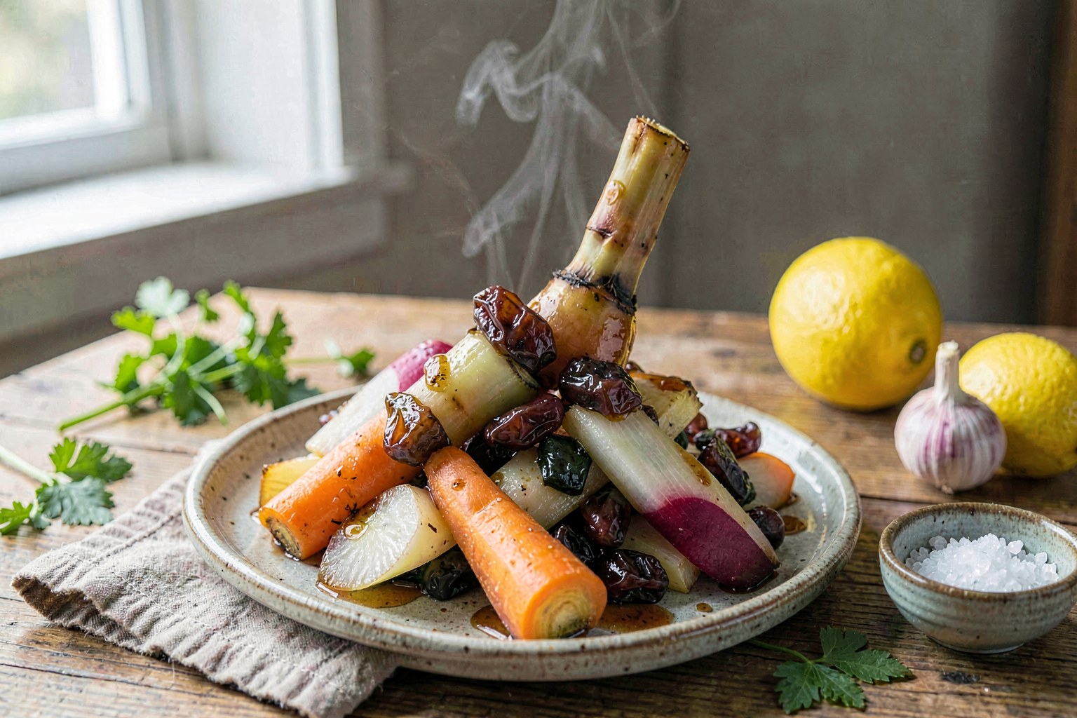 A nutrient-dense take on the classic Japanese stir-fry, featuring crisp burdock root and daikon radish glazed in a savory-sweet date syrup reduction. This dish delivers deep umami from fermented tamari and healthy fats from avocado oil, stripping away refined sugar and seed oils for a longevity-focused side.