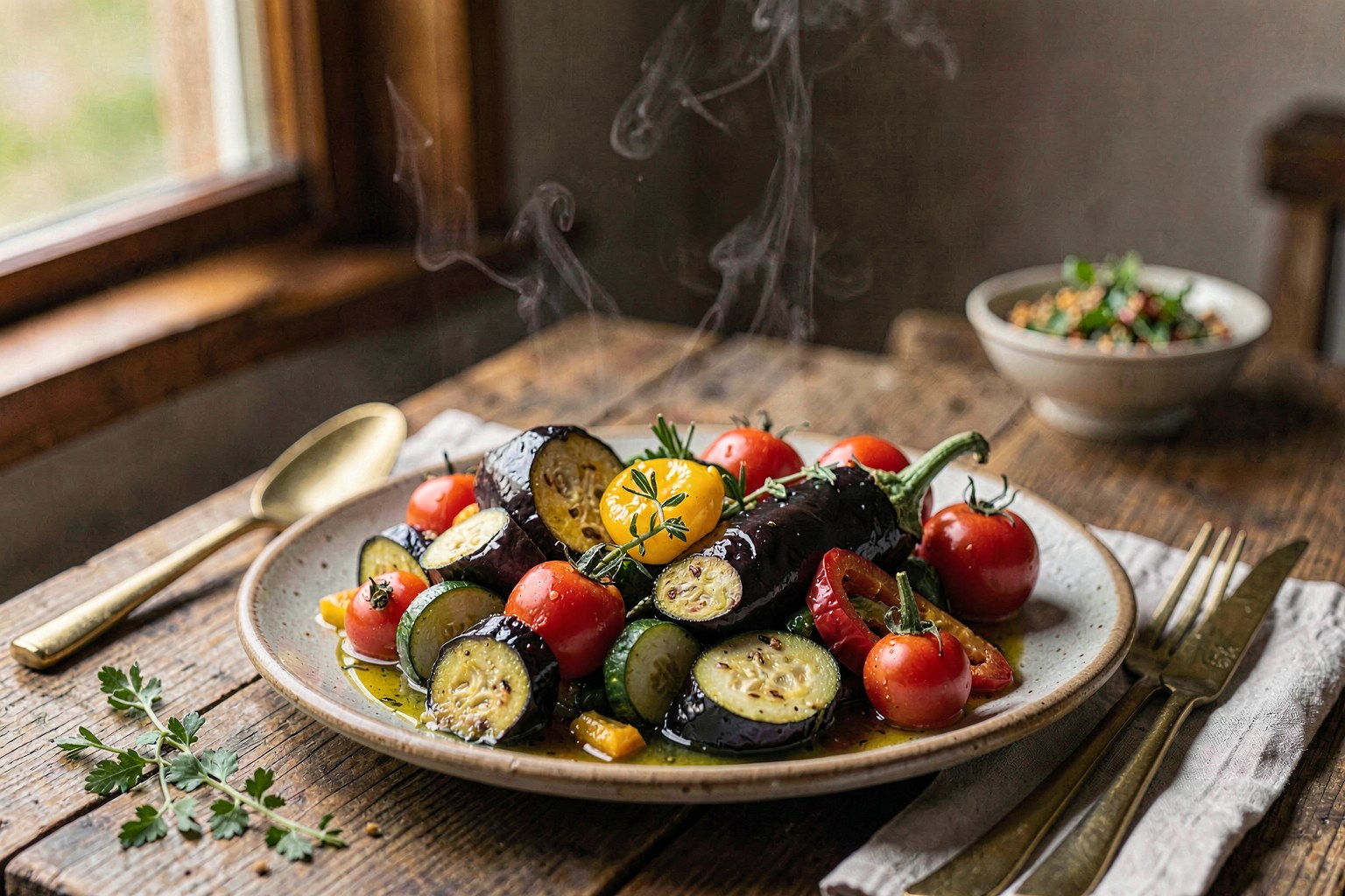 A Provençal vegetable stew celebrating the abundance of the French Riviera summer. Tender eggplant, zucchini, and peppers simmer slowly in fragrant olive oil and herbs until rich and deeply savory.