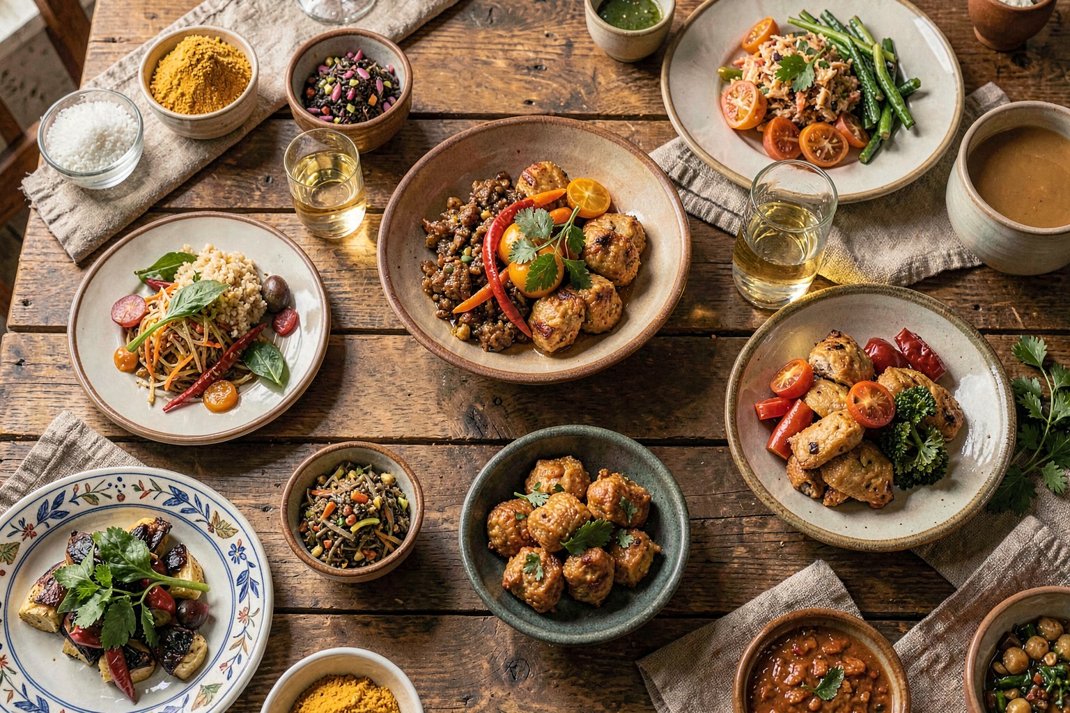 Dals, khichdi, turmeric-forward, ghee and ginger — ancient wellness cooking for modern pantries.