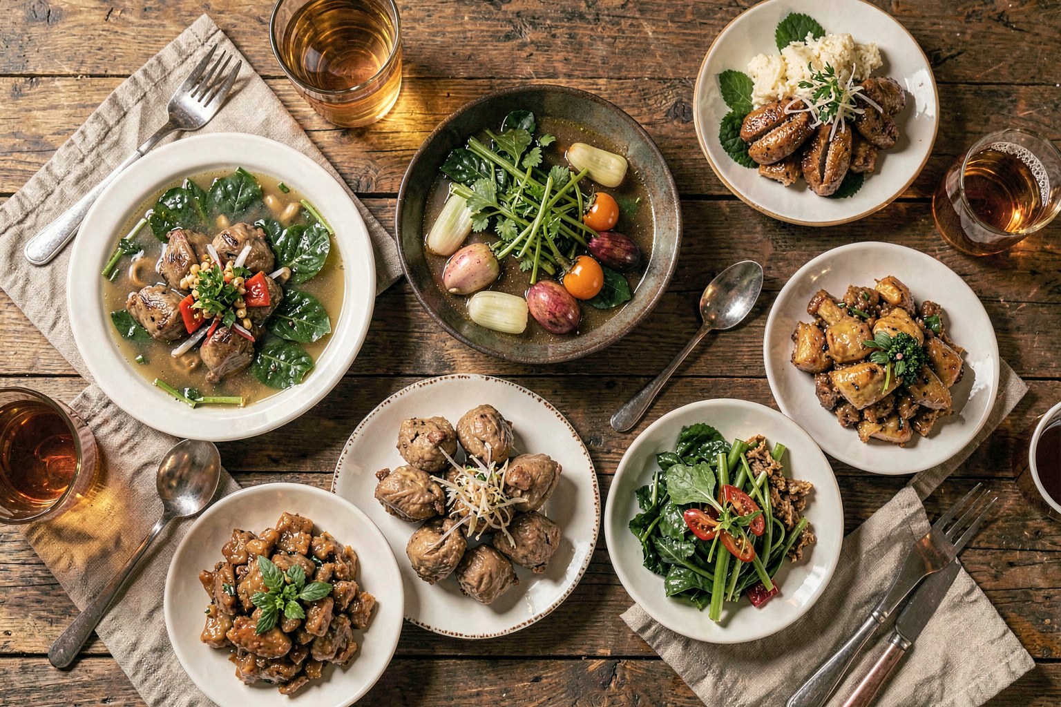A vibrant, spicy Central Vietnamese broth featuring grass-fed beef shank and pork hocks simmered with lemongrass, star anise, and fermented shrimp paste. This farm-fresh version replaces refined sugar and seed oils with date syrup and extra-virgin olive oil, delivering a deep, umami-rich bowl packed with collagen and polyphenols.